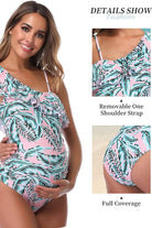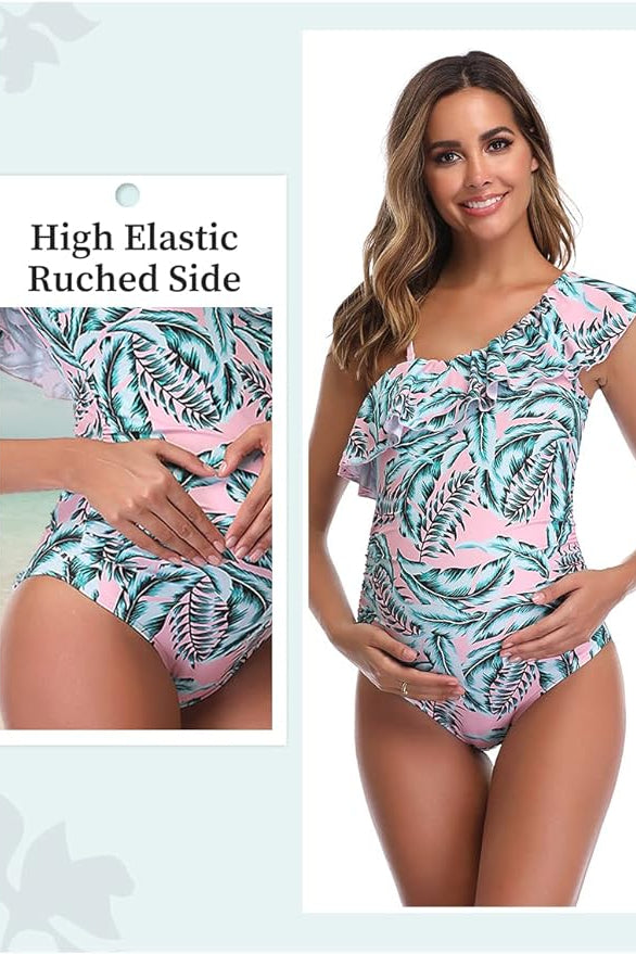 Traje de baño de una pieza para maternidad con diseño de un solo hombro y delicado volante que aporta un toque femenino y elegante. Su corte favorecedor se adapta con suavidad al crecimiento del abdomen, brindando comodidad y soporte. Perfecto para disfrutar cada etapa con estilo y confianza dentro o fuera del agua.