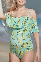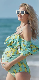 Traje de baño de una pieza para maternidad con delicado volante y tirantes ajustables que brindan soporte y comodidad. Su diseño favorecedor se adapta suavemente al cuerpo, resaltando la figura con un toque romántico y femenino. Perfecto para disfrutar momentos de relax o días de playa con total confianza y estilo.