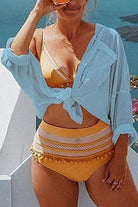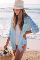 Salida de playa tipo camisa en tela ligera y fresca, ideal para usar abierta, anudada o cerrada según el estilo que prefieras. Su diseño versátil con mangas largas y botones frontales la convierte en la prenda perfecta para combinar con cualquier traje de baño o incluso con shorts y top para un look casual de verano.
