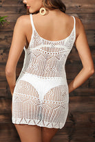 Salida de playa tipo vestido tejido en crochet, con tirantes delgados y aberturas laterales que realzan la silueta. Su diseño fresco y femenino la convierte en la prenda ideal para complementar cualquier traje de baño con un estilo sofisticado y relajado.