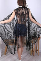 Salida de baño tipo chaleco confeccionada en tela ligera con transparencias que permiten lucir tu traje de baño con estilo. Su diseño incluye delicados detalles florales y flecos largos que aportan un estilo elegante y bohemio. Su diseño ligero y versátil permite combinarlo fácilmente con trajes de baño o atuendos casuales, ideal para usar en la playa, la alberca o en un look relajado de verano.