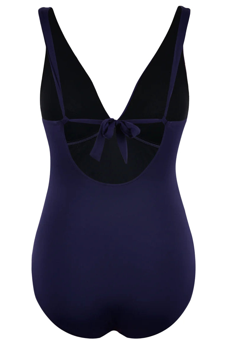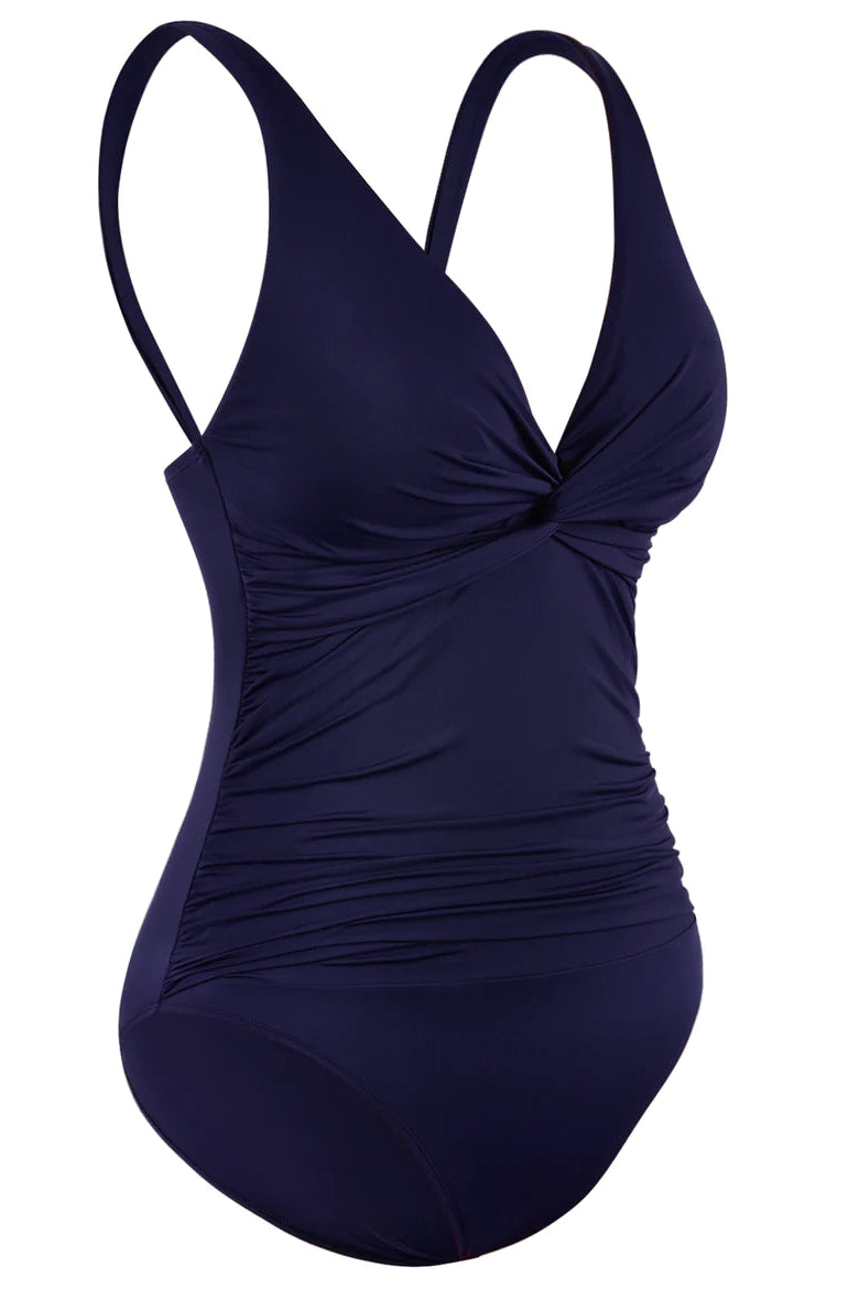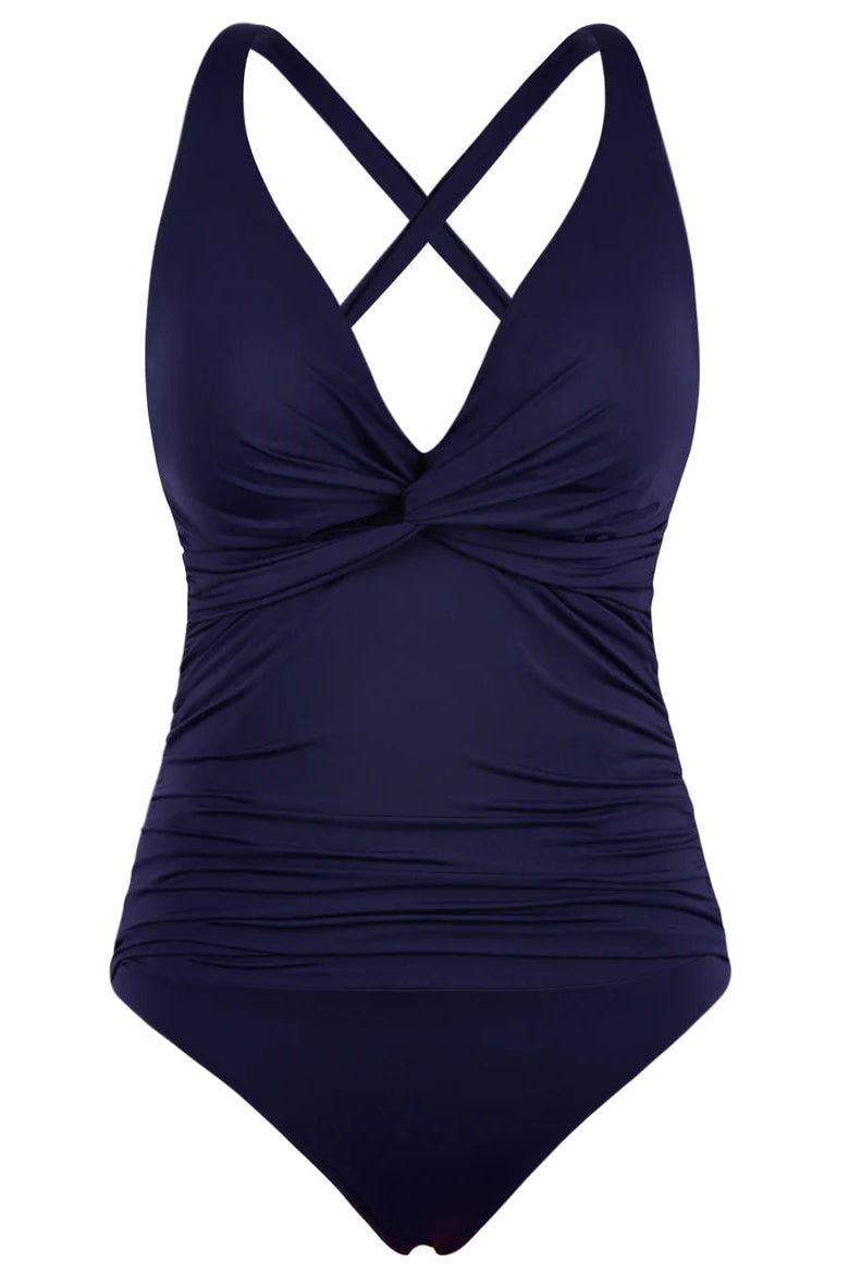 Traje de baño de una pieza diseñado para estilizar la silueta de forma natural y brindar una sensación de seguridad al usarlo. Su diseño frontal con drapeado estratégico ayuda a suavizar visualmente el abdomen, ofreciendo un ajuste favorecedor sin apretar ni incomodar.