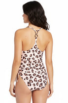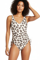 Traje de baño de una pieza con escote en V y tirantes ajustables que se cruzan en la espalda. Su diseño con fruncido lateral y lazos ajustables permite personalizar el ajuste para mayor comodidad. Un modelo moderno, favorecedor y con un estilo salvaje que resalta la figura con elegancia.