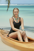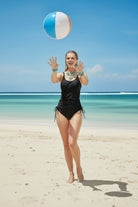 Los ajustes laterales con jareta permiten regular el largo y el efecto drapeado según tu preferencia, aportando versatilidad y un toque moderno. Sus tirantes delgados y ajustables aseguran un mejor ajuste, y la parte inferior ofrece cobertura clásica que equilibra el conjunto con discreción y estilo. Un traje de baño pensado para sentirte segura, cómoda y sofisticada en cada momento junto al agua.