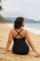 Este traje de baño completo en negro con rayas ofrece un control efectivo del abdomen, realzando tu figura con un diseño audaz y sofisticado. Perfecto para destacar tu silueta con confianza y estilo en cualquier ocasión junto al agua.