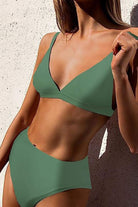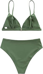 Traje de baño de dos piezas con tirantes ajustables y copa triangular que realza el busto. La parte inferior de cintura alta corte brasileño discreto brinda comodidad y un estilo moderno, con diseño llamativo que aporta personalidad y seguridad en cada movimiento. Ideal para quienes buscan un look atrevido y elegante en la playa o la alberca.