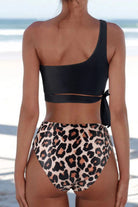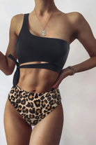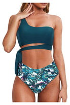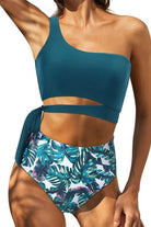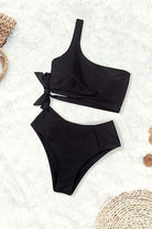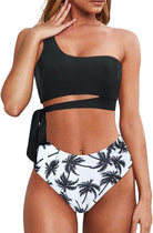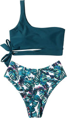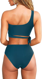Bikini alto con top asimétrico que resalta el hombro y realza la figura con su elegante corte cruzado. Su cinta lateral permite ajustarlo para mayor comodidad, mientras que la parte inferior de cintura alta ofrece una silueta estilizada y segura.