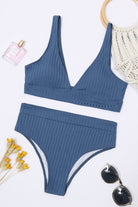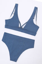 Diseño de textura acanalada que aporta un toque moderno y sofisticado. Su top con corte en V ofrece soporte y realce natural, mientras que la parte inferior de talle alto brinda comodidad y una silueta favorecedora.