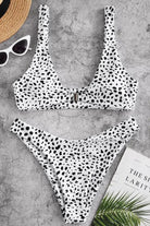 Bikini brasileño con estampado animal print en blanco con negro. El top de tirantes anchos cuenta con cierre metálico al frente para un ajuste seguro y moderno, mientras que la parte inferior de corte medio ofrece comodidad y estilo. Su diseño posterior tipo brasileño realza la silueta con un look atrevido y sofisticado, ideal para destacar en la playa o la alberca.