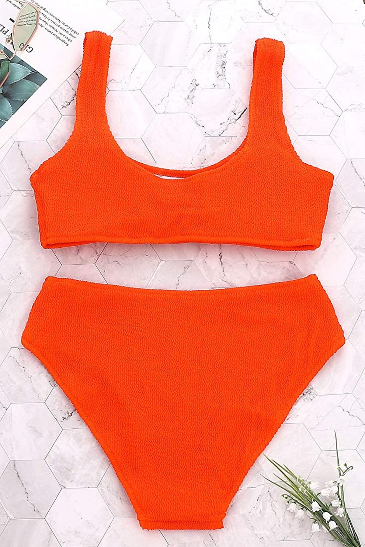 Top de corte recto con tirantes anchos que brindan soporte y estabilidad, acompañado de una textura elástica que se adapta al cuerpo para un ajuste cómodo y uniforme. La parte inferior ofrece un diseño de talle medio con la misma textura para lograr una silueta equilibrada y un ajuste que se mantiene firme sin limitar el movimiento.