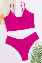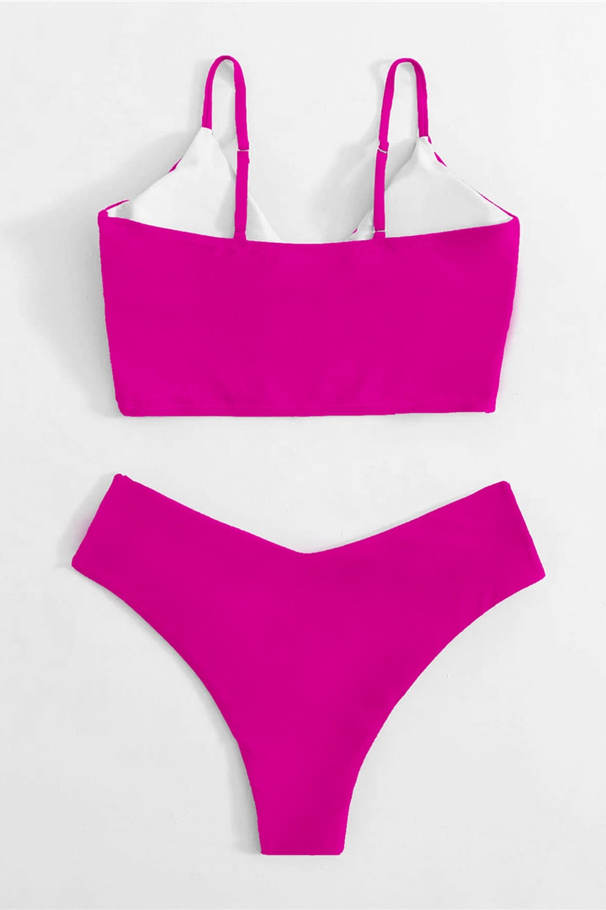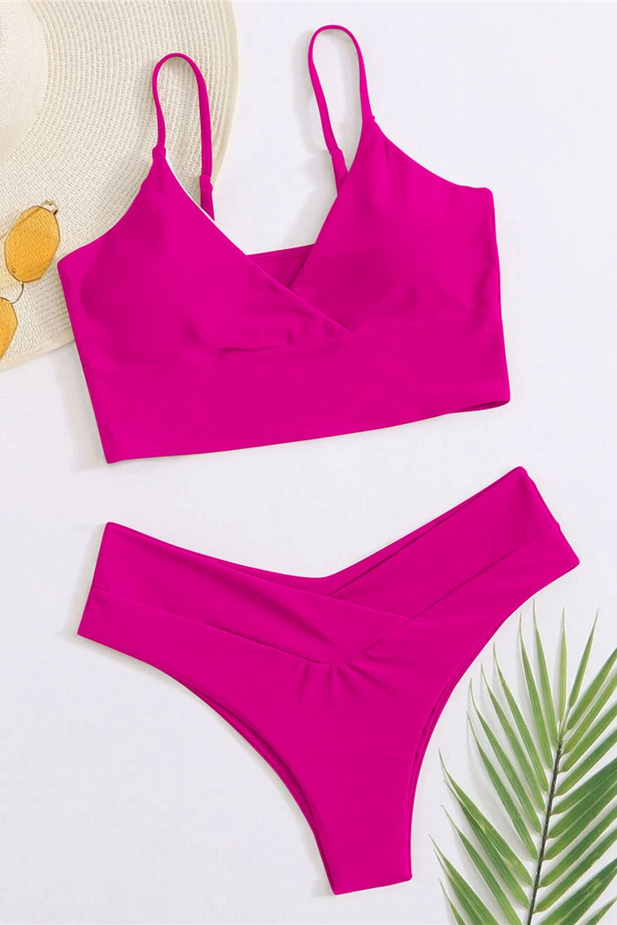 Bikini de dos piezas con top tipo crop y tirantes ajustables que brindan soporte y comodidad. Su diseño con escote cruzado y bottom en corte “V” estiliza la figura y resalta la cintura, logrando un look moderno y favorecedor. Perfecto para disfrutar el sol con un toque atrevido y elegante.