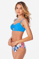 Bikini de dos piezas con un diseño cómodo y femenino. La parte superior cuenta con tirantes ajustables y un detalle de frunce al centro que aporta un toque delicado mientras ofrece soporte ligero. La parte inferior de tiro alto ayuda a definir la cintura y crea una silueta estilizada. Un conjunto ideal para disfrutar días de playa con un look moderno, fresco y favorecedor.