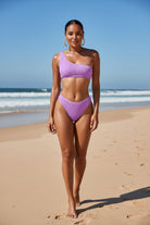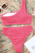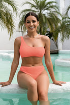 Traje de baño de dos piezas con un diseño asimétrico que aporta un estilo moderno y favorecedor. El top de un solo tirante ofrece un ajuste cómodo y estable, brindando soporte ligero y una sensación de seguridad al moverte. Su estructura está pensada para adaptarse al cuerpo de forma natural, manteniendo un equilibrio entre estilo y funcionalidad.