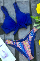 Este traje de baño de dos piezas destaca por su diseño moderno y favorecedor. El top con nudo frontal realza el busto de manera natural, brindando un ajuste cómodo y femenino, mientras que la parte inferior se adapta suavemente a las curvas con un corte que estiliza la figura. Perfecto para disfrutar del sol, relajarte junto al mar o vivir días de descanso con estilo y confianza.