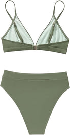 Este bikini de corte alto combina elegancia y estilo, realzando la figura con un diseño moderno y favorecedor. Su corte alto aporta un toque sofisticado mientras brinda comodidad y libertad de movimiento, ideal para quienes buscan un look chic y contemporáneo en la playa o la alberca.