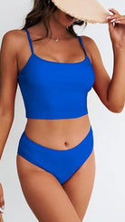 Este bikini de corte alto en un elegante tono azul combina un diseño moderno con un top largo que ofrece un ajuste cómodo y estilizado. Perfecto para realzar la figura y brindar libertad de movimiento, este traje de baño es ideal para quienes buscan sofisticación y comodidad en la playa o la piscina.