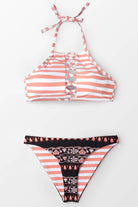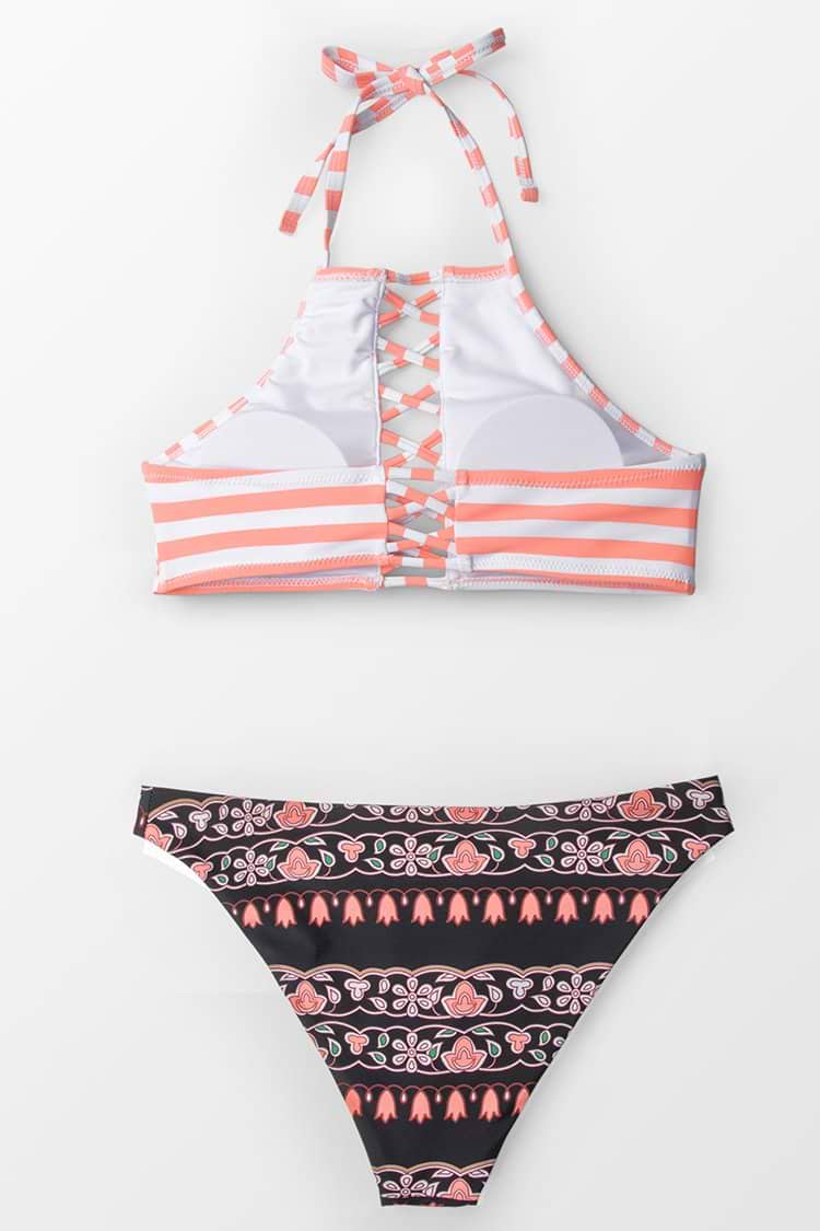 Traje de baño de dos piezas con diseño reversible que ofrece versatilidad en un solo modelo. La parte superior tipo halter brinda soporte cómodo y un ajuste seguro, con un detalle frontal que aporta estructura sin perder ligereza. Su confección permite usarlo por ambos lados, adaptándose a distintos estilos según la ocasión.