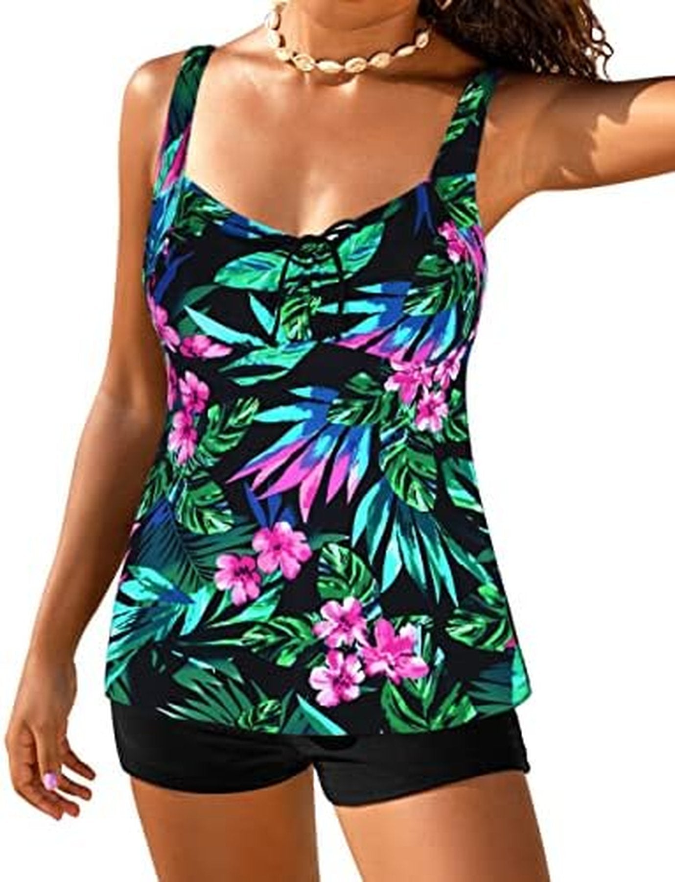 Este elegante tankini combina un short negro con una blusa de base negra decorada con flores verdes, creando un equilibrio perfecto entre estilo y comodidad. La blusa cuenta con ajustes laterales que permiten un fit personalizado, resaltando la silueta con refinamiento. Ideal para quienes buscan una pieza versátil y sofisticada para cualquier momento de relax o actividades acuáticas.