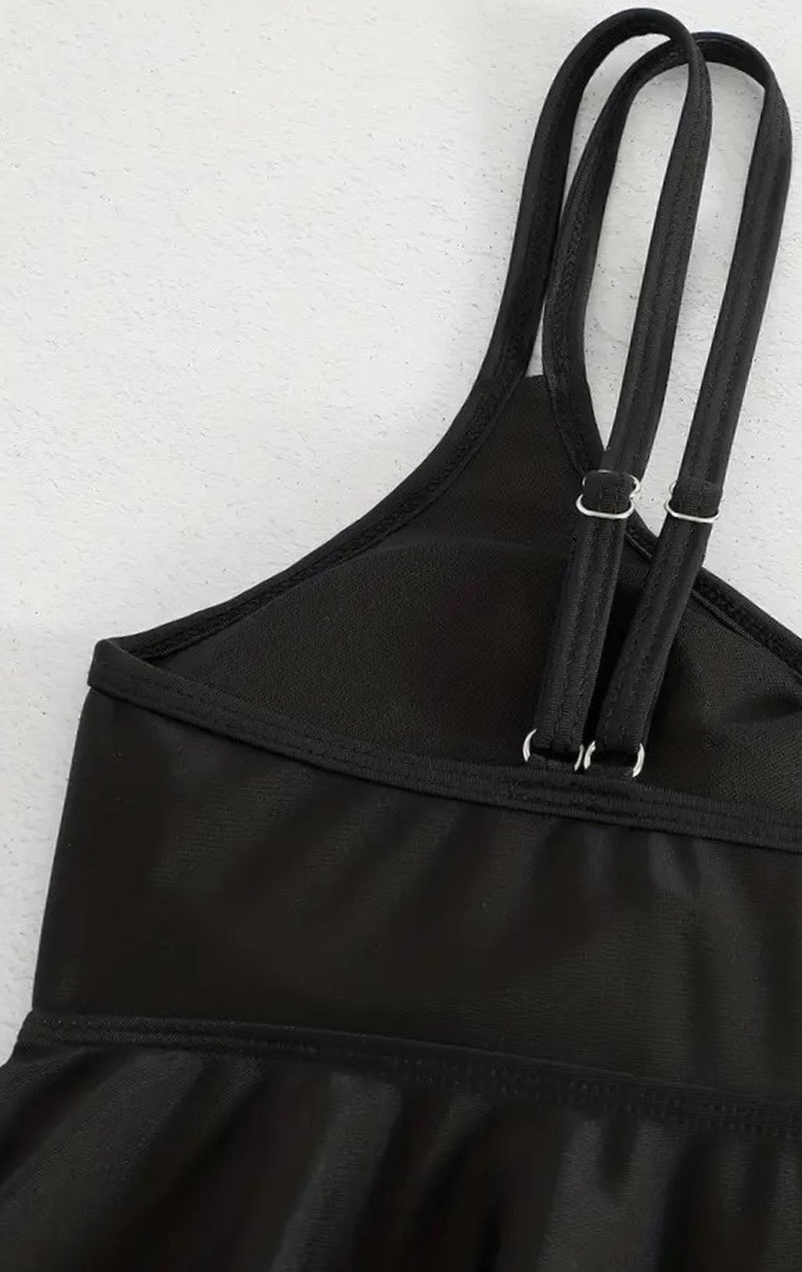 Este tankini short combina elegancia y comodidad con copas extraíbles, suaves y acolchadas que ofrecen soporte sin varilla. Su escote en U y tirantes dobles, fijos y ajustables, brindan un ajuste personalizado y sofisticado. El diseño sólido en color negro, junto con una espalda regular, asegura un estilo clásico y de alta calidad, ideal para quienes buscan distinción y funcionalidad en prendas de baño.