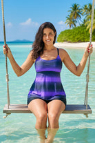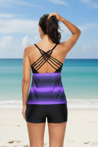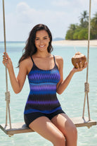 Traje de baño tipo tankini con short . Diseño femenino y elegante. Los tirantes delgados y la espalda con tiras cruzadas ajustables brindan un estilo moderno y un soporte seguro.