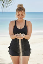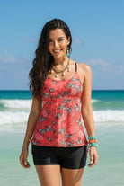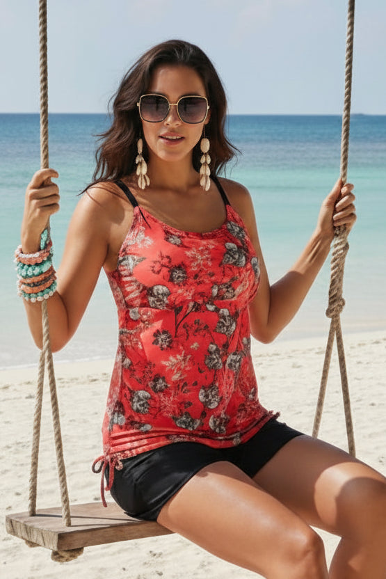 Traje de baño de dos piezas tipo tankini con short diseñado para brindar soporte, comodidad y una silueta favorecedora. El top tipo tankini cuenta con un corte limpio y estructurado que aporta seguridad al busto, mientras que su largo ofrece mayor cobertura y una sensación de confianza al usarlo. La espalda incorpora tirantes múltiples con diseño tipo arnés que no solo añaden un detalle moderno, sino que también ayudan a distribuir el peso y mejorar el ajuste. El short complementa el conjunto con un corte cómodo que se adapta al cuerpo sin marcar, permitiendo libertad de movimiento dentro y fuera del agua. Es una opción pensada para quienes buscan sentirse seguras, cómodas y con estilo en cada momento.