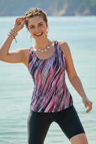 Traje de baño de dos piezas tipo tankini con short, diseñado para ofrecer soporte, comodidad y una silueta visualmente estilizada. La parte superior presenta un escote redondo con tirantes anchos que brindan mayor sujeción y un ajuste firme en el busto. Su corte recto y caída suave permiten cubrir el abdomen de manera natural, proporcionando seguridad y libertad de movimiento. El short de pierna media complementa el conjunto con un ajuste cómodo que ofrece mayor cobertura y estabilidad, ideal para disfrutar del agua o actividades al aire libre sin preocupaciones. Es un diseño funcional y favorecedor, pensado para acompañarte con confianza en cada momento.