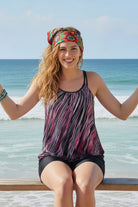 Traje de baño de dos piezas tipo tankini con short diseñado para ofrecer comodidad, libertad de movimiento y un ajuste favorecedor. La parte superior presenta un escote redondo con caída suelta tipo blusón que cubre el abdomen de manera natural y aporta una sensación ligera y fluida al vestir. Los tirantes delgados con cruce en la espalda brindan un soporte cómodo y un ajuste estable, además de añadir un detalle visual estilizado. El short complementa el conjunto con una cobertura práctica y segura, ideal para disfrutar actividades acuáticas o momentos de descanso con total confianza. Es un traje de baño pensado para acompañarte con comodidad y seguridad, manteniendo un diseño funcional y femenino.