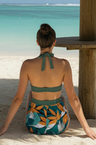 Traje de baño de dos piezas diseñado para brindar comodidad, soporte y libertad de movimiento en todo momento. La parte superior cuenta con diseño tipo halter con amarre al cuello y espalda, lo que permite un ajuste personalizado y favorecedor, además de un escote que estiliza de forma natural. El short ofrece mayor cobertura y seguridad, ideal para actividades acuáticas o para disfrutar largos momentos al aire libre sin perder comodidad.