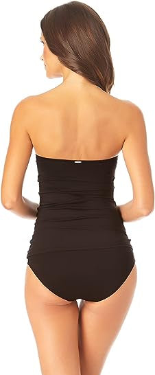 Traje de baño de dos piezas tipo tankini con top ajustable y tirantes removibles que permiten usarlo con o sin soporte adicional. El diseño cuenta con drapeado frontal que favorece y estiliza la figura, brindando un efecto de control visual en el abdomen. La parte inferior clásica ofrece comodidad y cobertura ideal para moverte con seguridad en la playa o alberca.