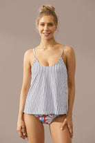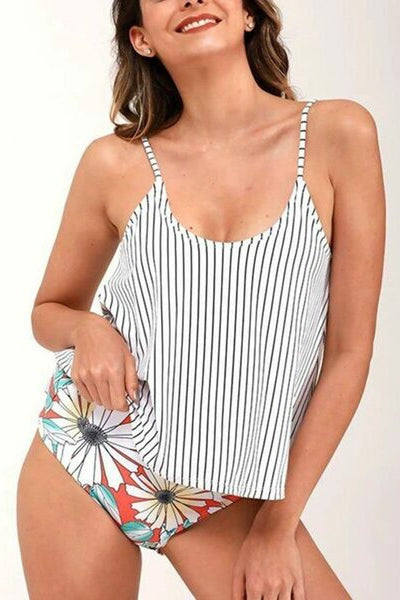 Traje de baño de dos piezas tipo tankini diseñado con un top de tirantes delgados y corte suelto que aporta comodidad y frescura, mientras que el bottom de cintura media ofrece un ajuste favorecedor. Su diseño combina funcionalidad y estilo para acompañarte en cada momento cerca del agua. Ideal para disfrutar con confianza y moverte con libertad.