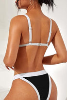 Bikini brasileño con diseño moderno y llamativo. El top triangular con varilla y tirantes ajustables ofrece soporte y realce, mientras que la parte inferior de corte alto estiliza la silueta. Su diseño posterior tipo brasileño acentúa las curvas con un estilo fresco y atrevido, ideal para disfrutar de la playa o la alberca.