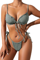 Bikini brasileño en color nude con textura acanalada que aporta un estilo moderno y elegante. El top con copas ajustables y tiras al frente brinda soporte y realce natural, mientras que la parte inferior de amarre lateral se adapta perfectamente a la silueta. Su diseño posterior tipo brasileño resalta las curvas con un toque sofisticado y atrevido.