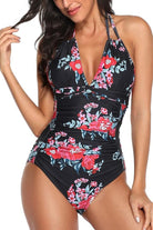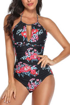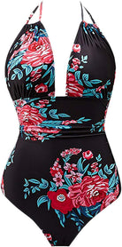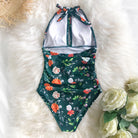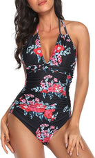 Traje de baño de una pieza con diseño floral y escote halter ajustable con moño al cuello. Su corte favorecedor con drapeado frontal ayuda a estilizar la silueta y aporta comodidad. Un modelo elegante y femenino que combina frescura y encanto en cada detalle.