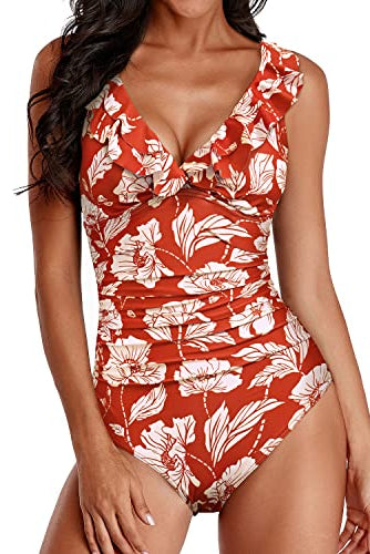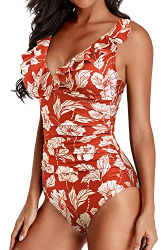 Traje de baño de una pieza escote en “V” adornado con delicados volantes que aportan un toque romántico. Su diseño con fruncido frontal ayuda a estilizar la figura, brindando soporte y comodidad. Perfecto para disfrutar la playa o la alberca con un look femenino, elegante y lleno de encanto.