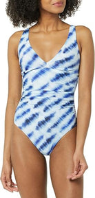 Traje de baño de una pieza con escote en V y fruncido frontal que realza la figura con un efecto visual estilizado. Sus tirantes ajustables brindan soporte y comodidad, mientras que el diseño moderno y fresco lo convierte en una opción ideal para disfrutar del sol con confianza y estilo.