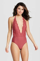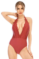 Traje de baño completo con detalle de encaje en el escote profundo, ideal para quienes buscan un diseño elegante y sensual. Su estilo halter realza la figura y ofrece un ajuste favorecedor que combina glamour y comodidad.