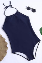 Traje de baño de una pieza con cuello halter ajustable y escote recto que brinda un estilo clásico y elegante. Su diseño con drapeado en la zona del abdomen ayuda a estilizar visualmente la figura y ofrece un ajuste cómodo. Ideal para quienes buscan una prenda atemporal que combine sencillez, confort y sofisticación.