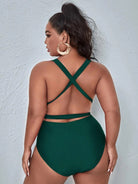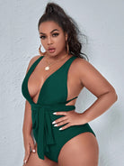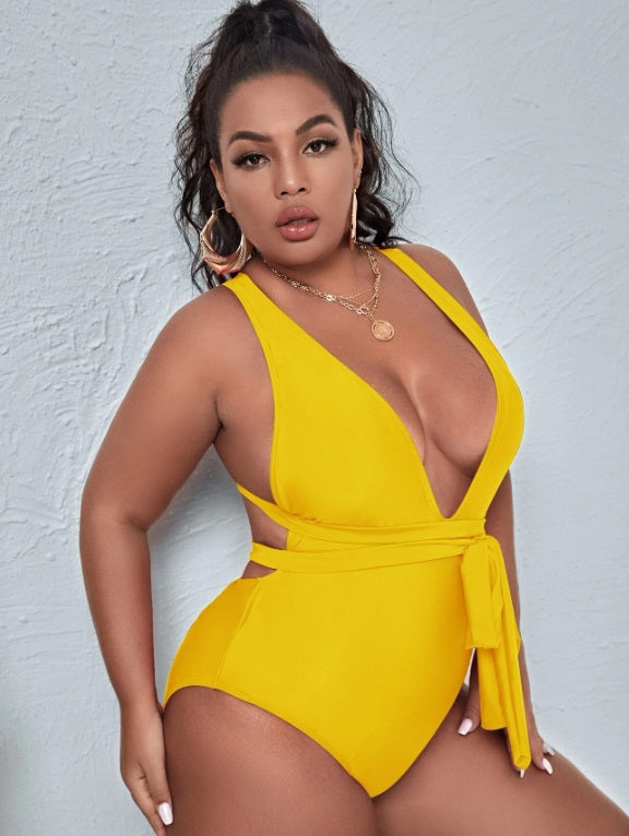Traje de baño de una pieza con escote profundo en V y amarre al cuello tipo halter con espalda descubierta y corte moderno, es ideal para lucir con elegancia y seguridad en la playa o la alberca.