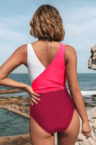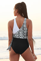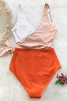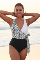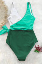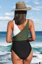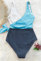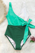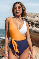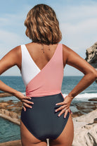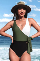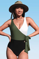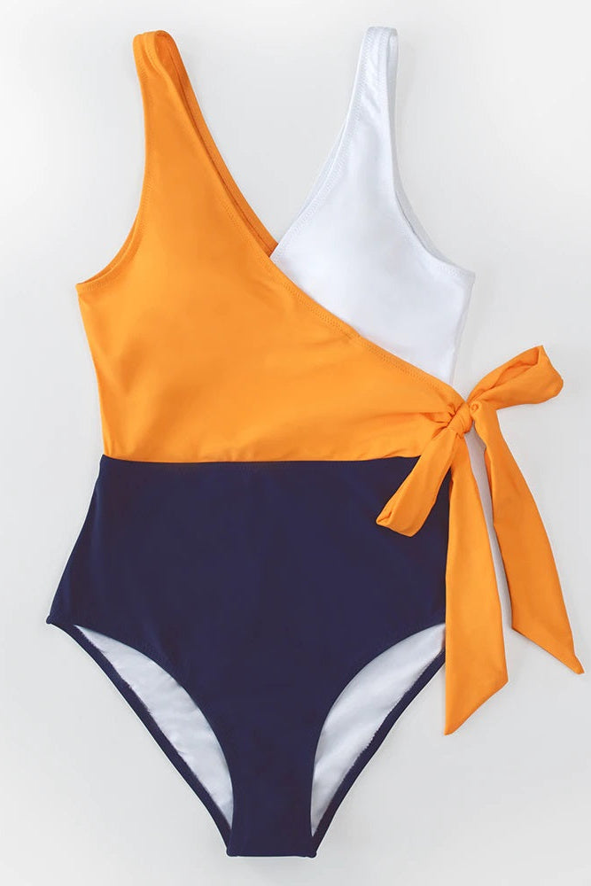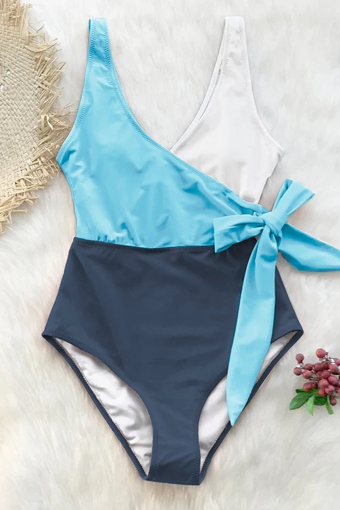 Traje de baño de una pieza con diseño cruzado bicolor que combina elegancia y frescura. Su escote en “V” favorece el busto, mientras que el lazo en la cintura define la silueta con un toque femenino. La espalda con corte en “V” completa un estilo moderno, cómodo y sofisticado, ideal para disfrutar con confianza en cada momento.