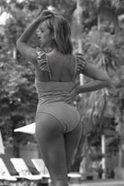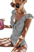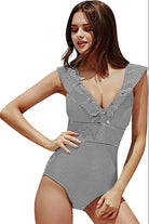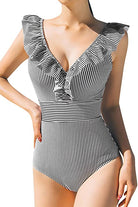 Traje de baño de una pieza con escote en V y delicados volantes que aportan un toque femenino y elegante. Su diseño ajustado realza la figura y ofrece un soporte cómodo gracias a su estructura en la cintura. La parte posterior brinda cobertura equilibrada, perfecta para disfrutar con estilo y confianza.
