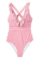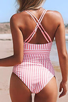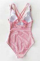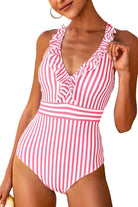 Traje de baño de una pieza con escote en V adornado con delicados volantes que realzan el busto y aportan un toque femenino. Su diseño de tirantes cruzados en la espalda ofrece soporte y un ajuste seguro. La cintura marcada estiliza la figura, logrando un equilibrio perfecto entre elegancia y comodidad.