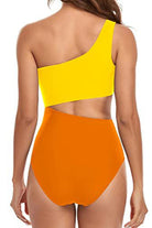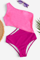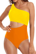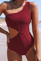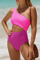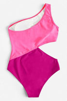 Traje de baño de una pieza con diseño asimétrico de un solo hombro. Incluye cortes laterales estratégicos que estilizan la silueta y añaden un toque moderno y sofisticado. Su ajuste cómodo y elegante lo convierte en una opción ideal para destacar con estilo en la playa o la alberca.