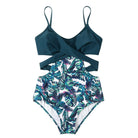 Traje de baño de una pieza con diseño moderno que combina elegancia y frescura. Su parte superior con nudo cruzado resalta el busto de forma natural, mientras el corte estratégico en la cintura estiliza la silueta. Perfecto para quienes buscan una prenda cómoda, favorecedora y con un estilo tropical ideal para disfrutar del sol.