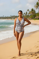 Este traje de baño de una pieza envuelve la figura con un diseño que realza el torso y ofrece soporte cómodo gracias a su escote estructurado y tirantes firmes. Su confección moldeadora estiliza de forma natural, mientras que la cintura marcada aporta definición y equilibrio visual. La textura del diseño añade un toque distintivo sin perder elegancia. Una pieza pensada para acompañarte con seguridad y estilo en cada momento, invitándote a disfrutar del agua y del sol con total confianza.