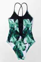 Este traje de baño de una pieza combina frescura tropical y un diseño moderno que estiliza la silueta. Su escote redondeado al frente aporta un toque juvenil y cómodo, mientras que la espalda con tirantes cruzados y ajuste tipo corset permite adaptarlo al cuerpo, brindando mejor soporte y un efecto visual favorecedor. El estampado de hojas grandes crea un contraste vibrante que resalta sobre la base clara, logrando un look llamativo pero elegante. Es una opción ideal para quienes buscan un traje de baño con personalidad, ajuste regulable y un estilo que destaca tanto en la playa como en la alberca