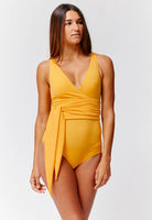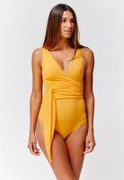 Traje de baño de una pieza con escote cruzado que resalta la figura de manera elegante y femenina. Su diseño con fajón ajustable en la cintura permite adaptarlo al cuerpo brindando soporte y comodidad. La parte posterior ofrece cobertura equilibrada y un estilo sofisticado ideal para disfrutar con confianza dentro y fuera del agua.