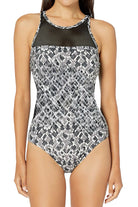 Traje de baño de una pieza con escote redondo y detalles de malla que aportan un toque moderno y sofisticado. Su diseño con tirantes gruesos ajustables y broche posterior brinda soporte y comodidad, mientras que su textura realza la silueta con elegancia. Ideal para quienes buscan estilo y confort en cada movimiento.
