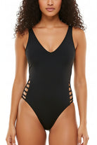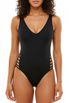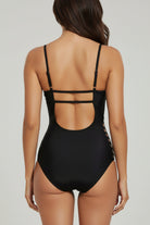 Traje de baño de una pieza con tirantes ajustables y laterales con tiras entrecruzadas que estilizan la figura. Su espalda abierta con detalles en líneas horizontales aporta un toque moderno y sofisticado. Ideal para quienes buscan un diseño elegante, cómodo y con un ajuste favorecedor para cualquier ocasión junto al agua.