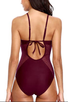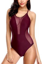 Traje de baño de una pieza con paneles de malla translúcida que estilizan la figura y añaden un toque sofisticado. Su diseño con tirantes finos ajustables y detalle de lazo en la espalda ofrece un ajuste cómodo y femenino. Ideal para disfrutar del sol con elegancia y confianza.