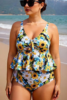 Traje de baño tankini de dos piezas alegre y femenino. El top con olanes aporta movimiento y frescura, mientras que el detalle de moño al frente realza el diseño. Su parte inferior de talle alto ofrece ajuste cómodo y favorecedor, ideal para disfrutar con estilo y confianza en la playa o la alberca.
